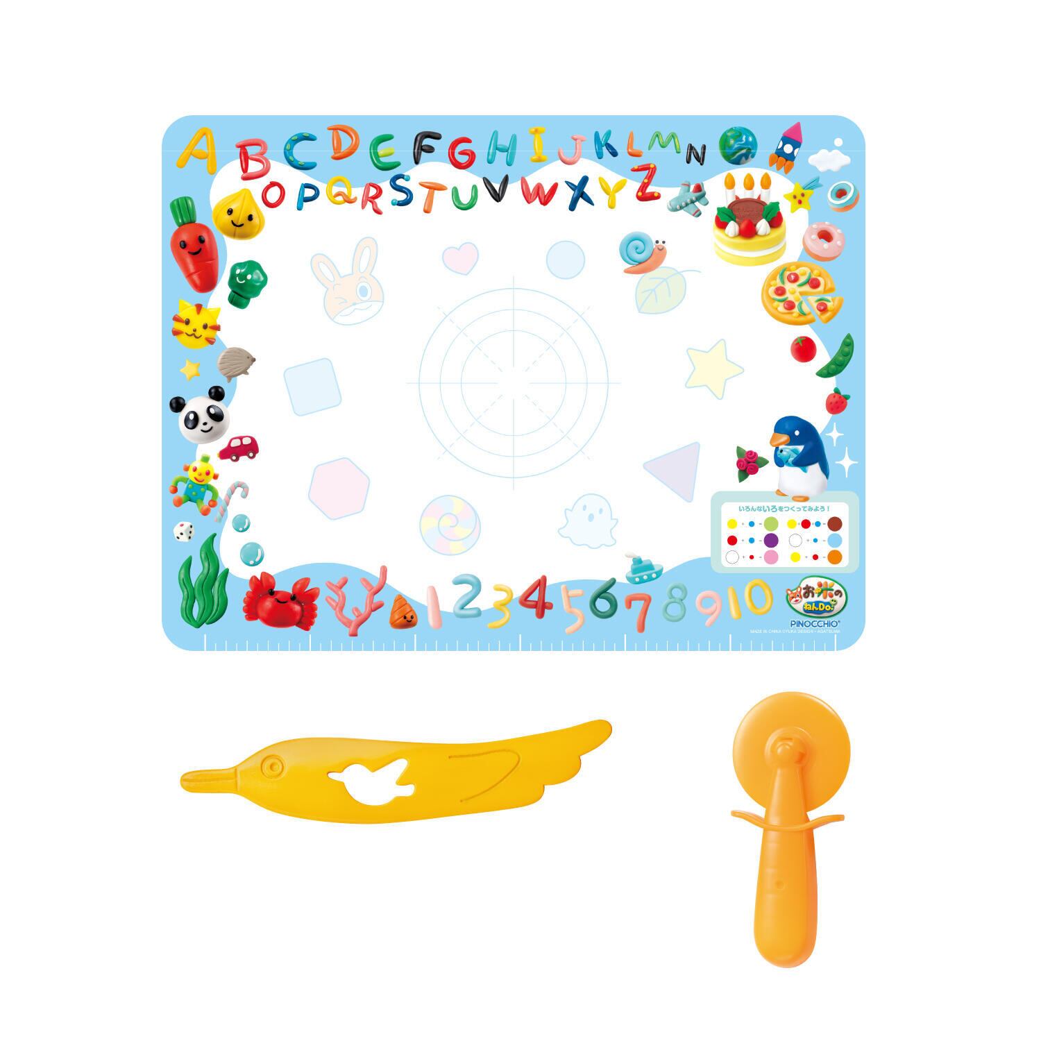 ●軽くて大きなねんど板とくるりんカッター&かわいいとりさんヘラのお道具セットです。